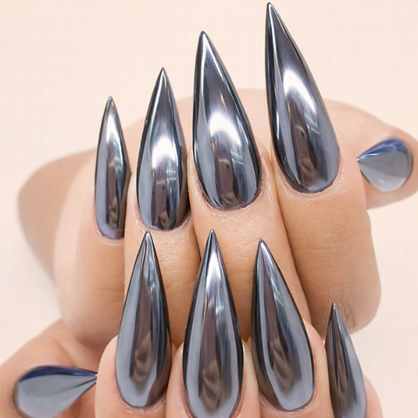• Short chrome nails give a very neat, contemporary, and unpretentious look