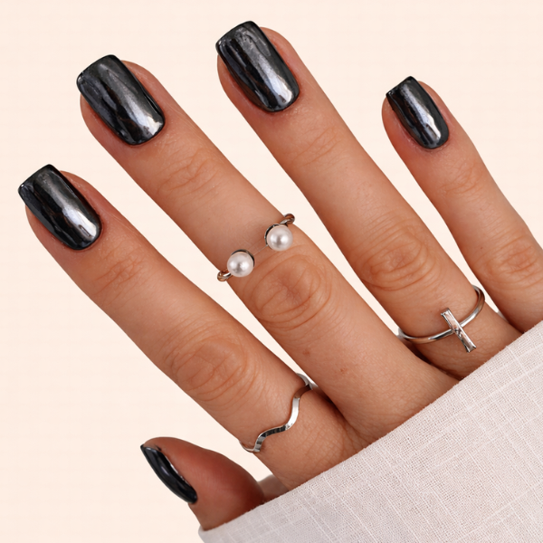 Press-On vs Salon Black Chrome Nails