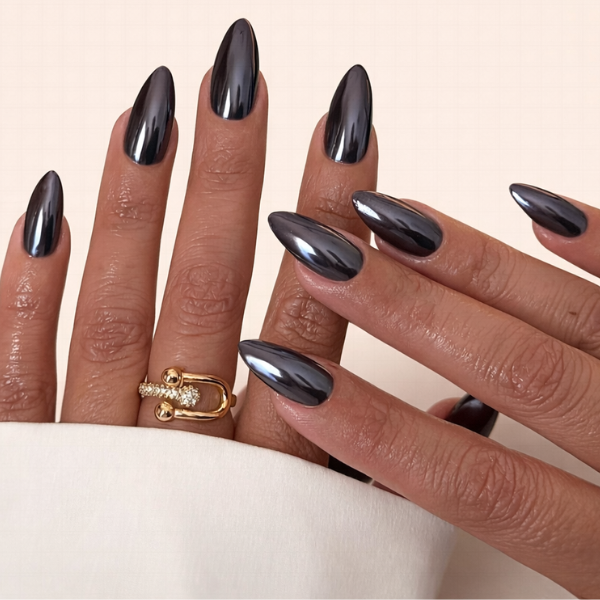 This is a beginner-friendly way to try black chrome nails without committing to salon services or complicated steps, making This is a good starting point if you’re new