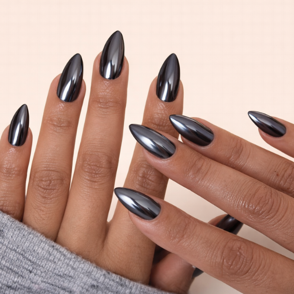 This press-on set makes it easy to get that clean black chrome look at home without a salon appointment. It works well for both short and long nails and keeps the finish neat and glossy, making This is the press-on set I usually reach for