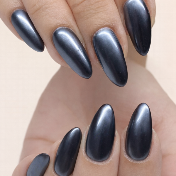 Matte black chrome nail provide a softer and more contemporary look. Though they still have a metal-like depth, they are very understated and chic.