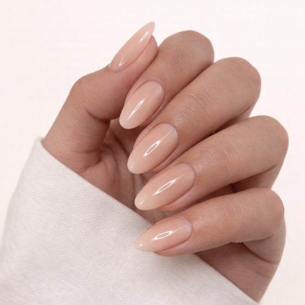 - Glazed Nude Nails: Gentle luster with a satin glow