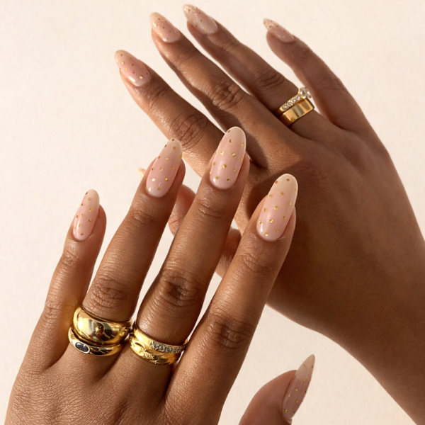 Gold foil, fine gold lines, or small metallic accents show the perfect amount of luster. Nude nails with gold accents are classic, elegant, and match everyone who desires a luxurious look without being bold.