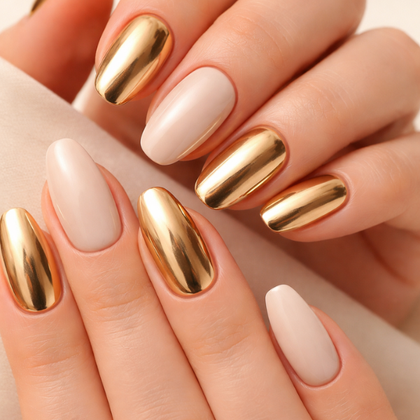 The gold dip powder gives a classic metallic look, which is suitable for both everyday casual and fancy night out.