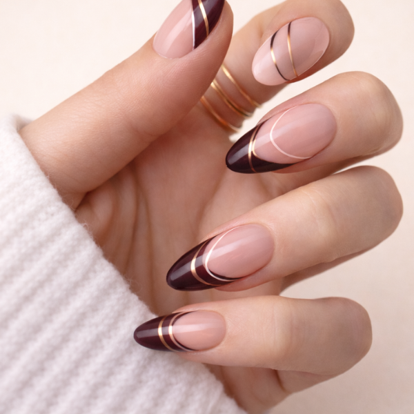 • Brown French Tips: A contemporary take on the traditional French manicure.