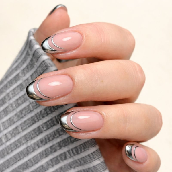 Two thin lines on the tip instead of one. This modern twist works especially well on almond and coffin shapes.Variants: