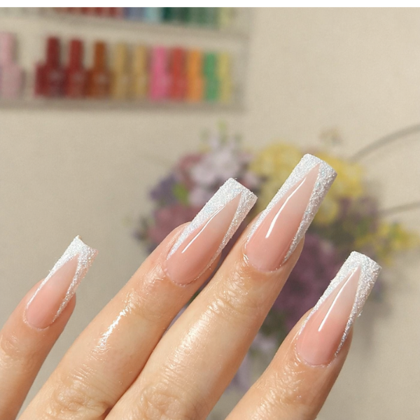 Glitter at the tips make nails look shiny and shimmery and they stand out more.