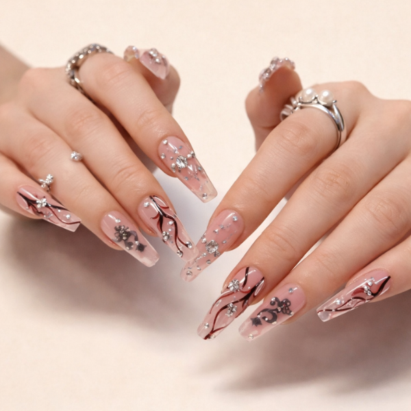 When studded with pearls, rhinestones, gel layered with texture, and 3D flowers, the nail experience leaps up a notch.