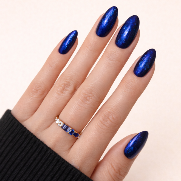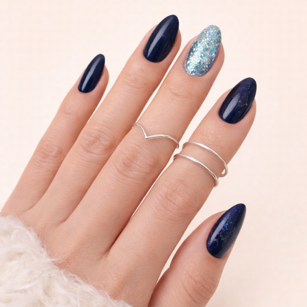 • Deep shades of purple, black, or blue can be used for creating a galaxy nail design and silver glitter can be added for a celestial, starry effect.