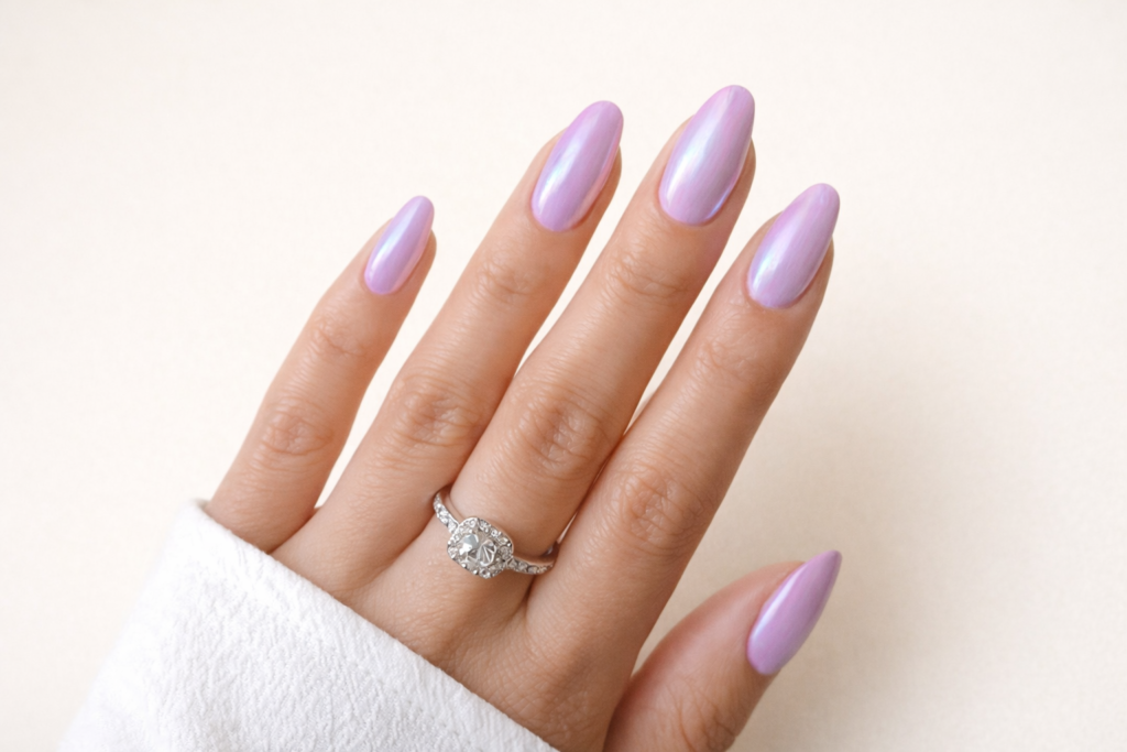 A creamy lavender-toned polish that’s subtle yet eye-catching — perfect for everyday wear, brunch plans, or a chic seasonal refresh.